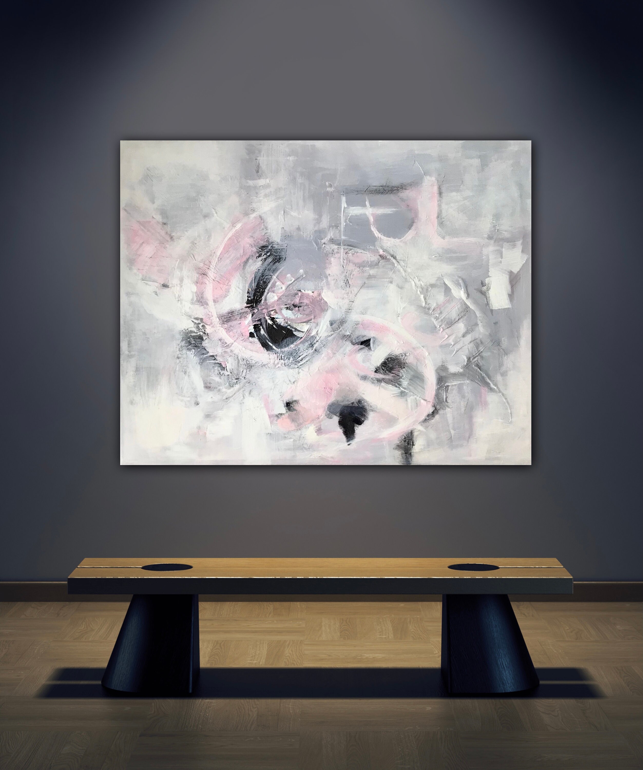 Large Timeless Abstract Original Painting Pink Gray Acrylic Etsy