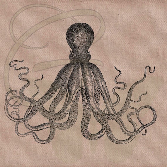 Printable Octopus Hand Drawn Clipart Ocean Digital Canvas Etsy